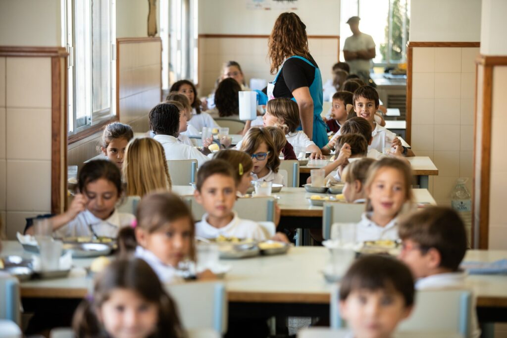 L’estona de dinar és un moment important. En aquesta estona, els infants i joves sempre estan acompanyats pels monitors propis del centre, qui promouen bons hàbits nutricionals i socials, indispensables per gaudir d’una vida saludable. També es fan càrrec de què els alumnes mengin educadament i adequadament , a més d’ estar a la seva disposició i vigilància després de dinar.