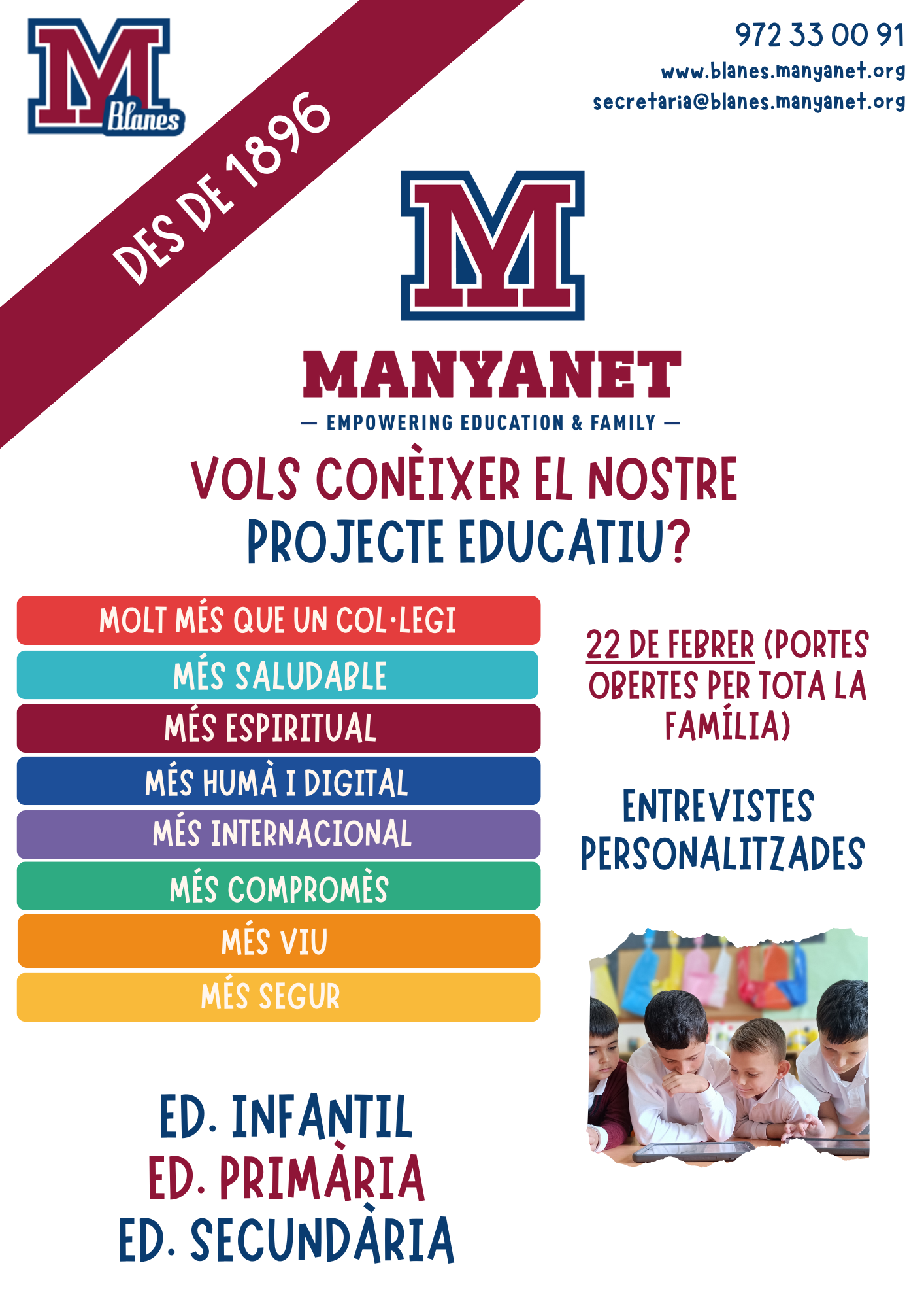 Amb les portes obertes, convidem a les futures famílies a viure l'experiència Manyanet. Durant les properes setmanes, moltes famílies s'aproparan a les escoles per escollir el millor centre pels seus fills i filles.